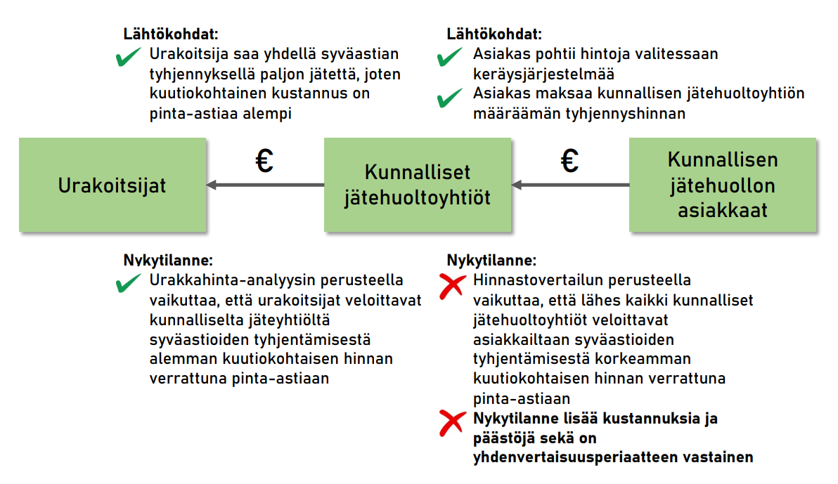 ”Tämä kaikki tarkoittaa sitä, että todellisuus ei toteudu jätehuollon asiakashinnoittelussa vaan sen suhteen mennään väärään suuntaan verrattuna ympäristöministeriönkin peräänkuuluttamiin lajittelua kannustaviin jätemaksuihin.”